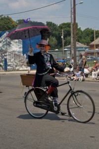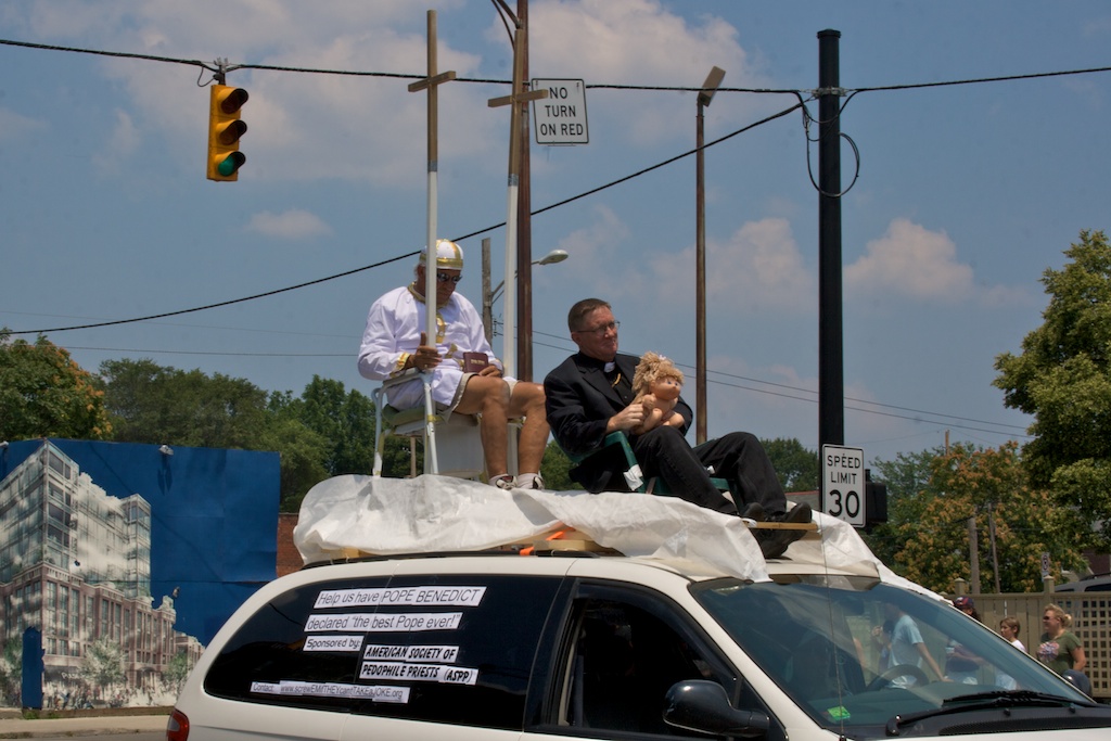 I always look forward to seeing the staples who turn up every year, such as the Marching Fidels and the folks from Studio 35’s Rocky Horror Picture Show troop who do the Time Warp for the entire length of the parade route. Other marchers come up with a new gag each year. Some folks take on recent events. (Past parades have ridiculed the smoking ban, Michael Jackson’s trial, and Arizona’s immigration reform.) Others just get downright weird, like the girl who painted herself orange from head to toe, sprayed her hair green, and marched as a carrot.