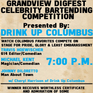 Drink Up Columbus is hosting a celebrity bartender challenge this Saturday, June 15 at Grandview Digfest and it’s sure to be slightly awkward and random and very entertaining.