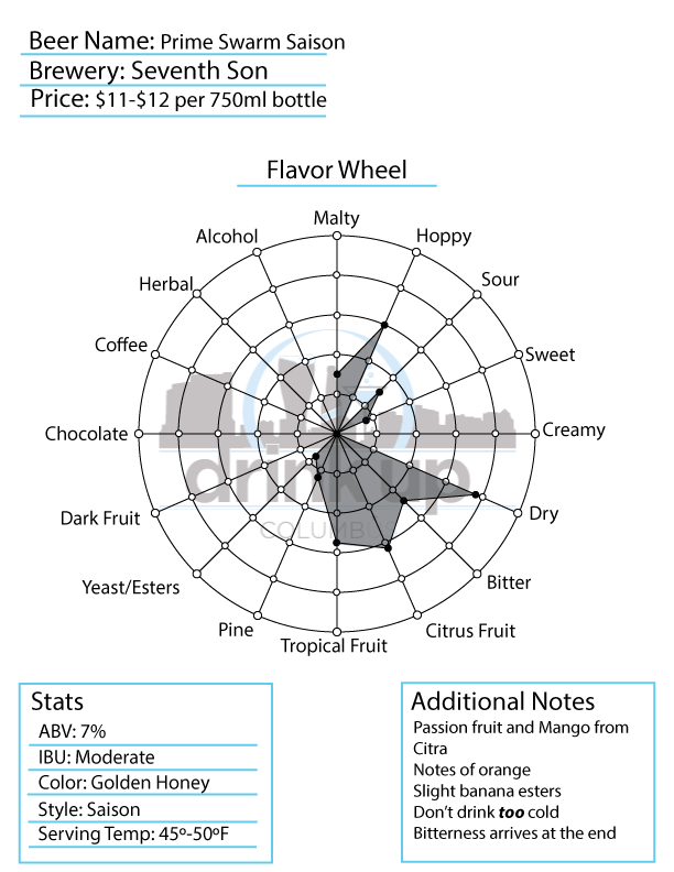 Saisons always have the potential to be an outlet of great creativity in the craft beer world. Full of fruits, yeasts, and spices, the various combinations of flavors and components are endless. Firmly seated in that belief is Seventh Son, arriving with their Prime Swarm Honey Saison, a late Summer brew that combines three different strains of yeast, Citra hops, and of course, honey. This beer is already complex, even before the cap is popped, and with a delivery in the form of a massive 750ml bottle, there is high potential for an epic drinking experience. Luckily, the best way to find out is to drink it.