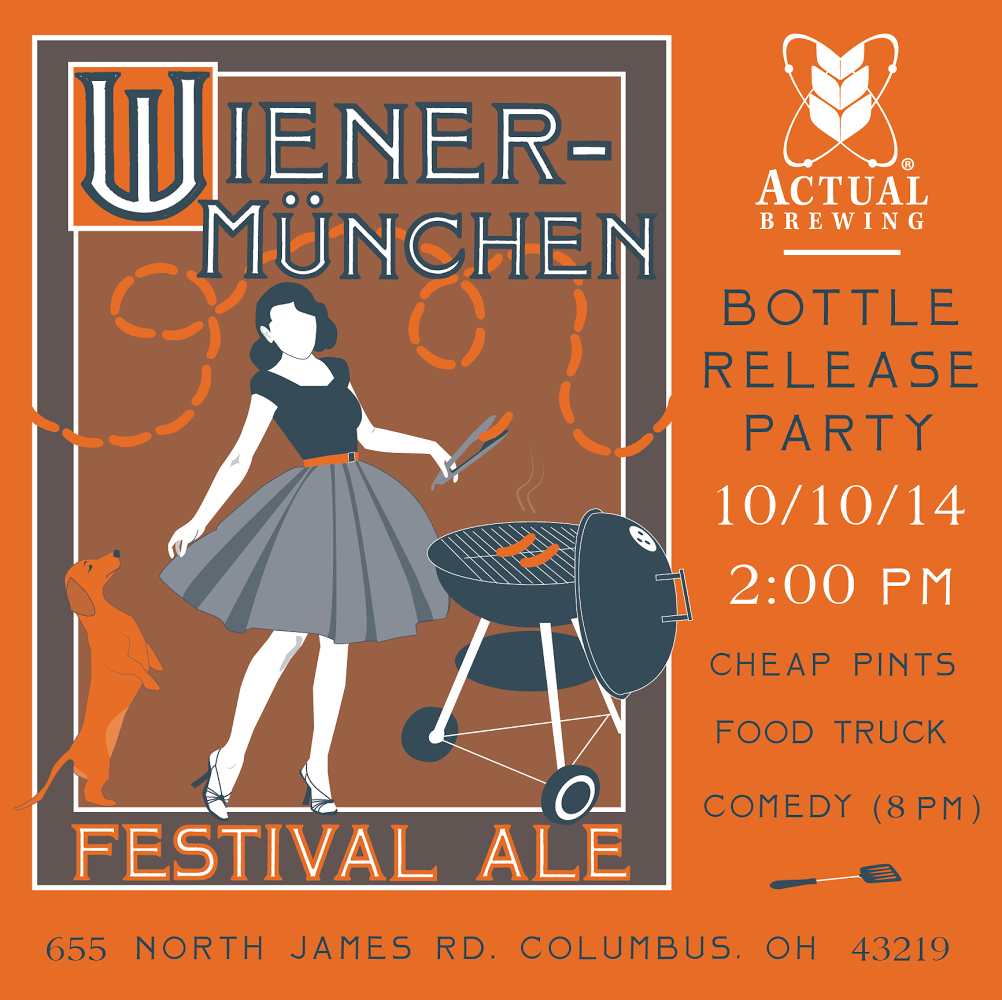 A launch party will be held at the Actual Brewing Company on October 10 beginning at 2pm, with bottles available for $5.99. Bottles will hit store shelves the week after the event. The launch event will feature beer specials, wieners and brats, and standup comedy beginning at 8pm.