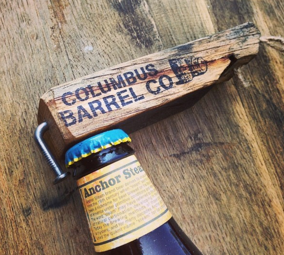 Unique meets functional with this hand crafted bottle opener from the Columbus Barrel Company. Its simple aesthetic features a built in magnet to hold onto the bottle cap after popping one open.