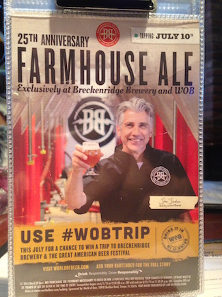 This summer, World of Beer will tap three unique and limited beers from three different breweries across the country. This past Friday, I was present when Breckenridge’s Farmhouse (brewed with sea salt and grapefruit peel) started pouring. And, I was glad to be there. As you’ll see, the beer wasn’t what I was expecting at all, but it was still tasty and great for the season.