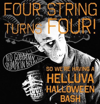 Four String Brewing Company will celebrate four years of brewing with a Halloween bash featuring an astounding 40 different Four String brews.